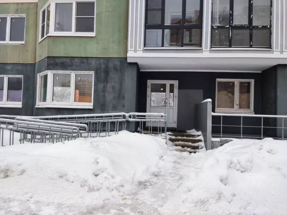 Помещения расположено на первом этаже 27-этажном панельном доме 2018 г. постройки. Помещение есть два отдельных входа. Помещение без отделки. Высота потолков 2,6 м. Центральные коммуникации. Вход оборудован пандусам. Дом находиться на первой линии главной улицы, торцом к проезжей части. Стихийная парковка возле дома. Локальный пешеходный трафик. большой жилой массив. Рядом остановка общественного транспорта и центральная улица города.