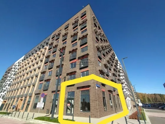 Аренда торгового помещения 94.3 м2 на ул. поселение Новосередневском проспекте д. 17к2 (22 минуты транспортом от метро Филатов Луг). 1-я линия домов, угловое помещение.