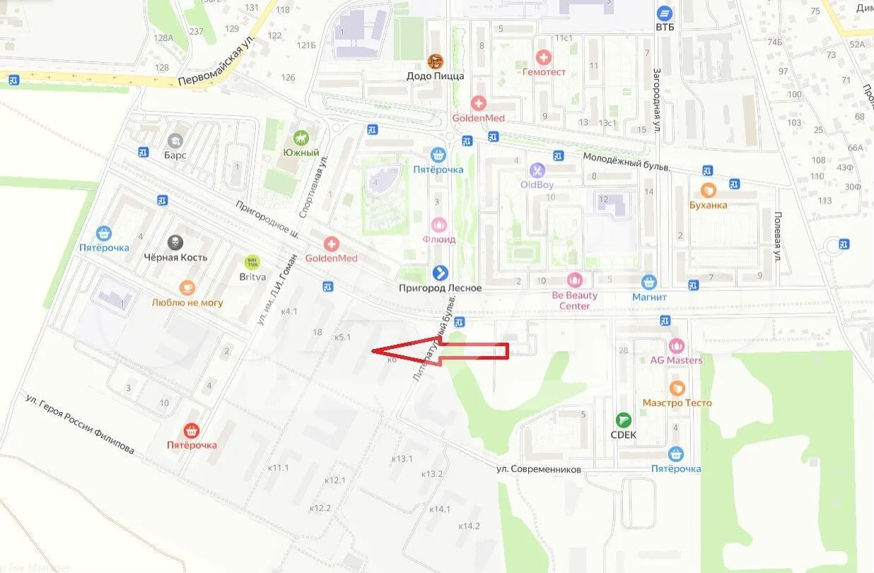 | Улица | микрорайон Пригород Лесное |