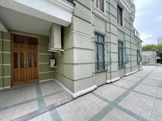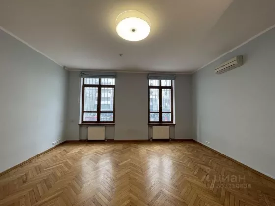 Планировка кабинетная: шесть кабинетов (один из которых 30 м2). 3 кладовки (одну из которых можно переоборудовать в переговорную). Гардеробная у входа (можно переоборудовать в серверную). Отдельное помещение для кухни. 2 санузла (один с душевой). 4 кондиционера, электричество-30 кВт, высокие потолки Охранно-тревожная и пожарная сигнализация. Помещение оборудовано под отделение банка, имеет кассовый узел с бронированной дверью (сейчас используется в качестве кухни) и встроенный сейф. Полы в кабинетах паркет, полы в остальных помещениях плитка. В стоимость аренды входит 2 парковочных места. Дополнительные места можно арендовать отдельно.